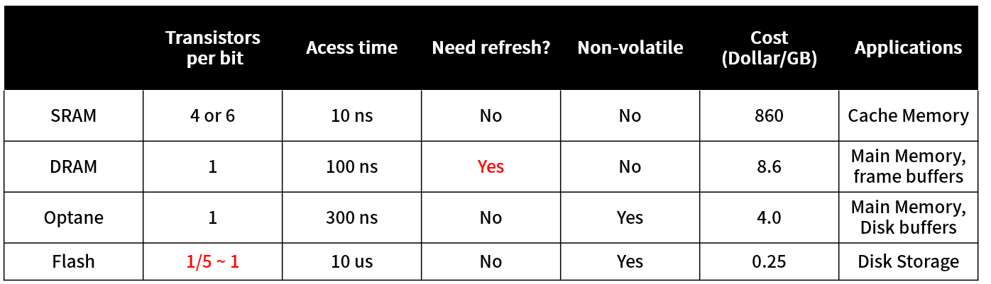 SRAM vs DRAM vs Optane vs NAND Flash