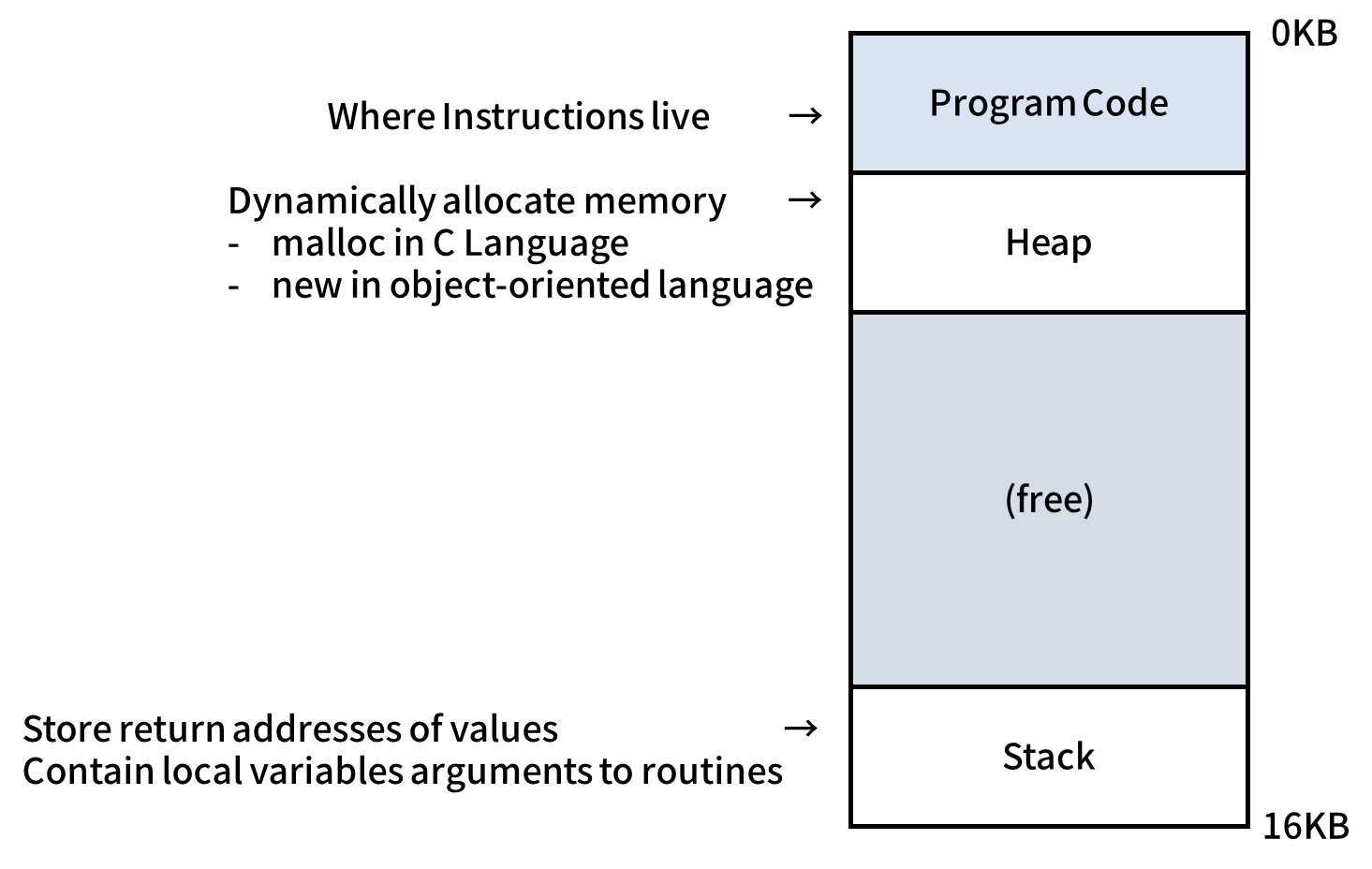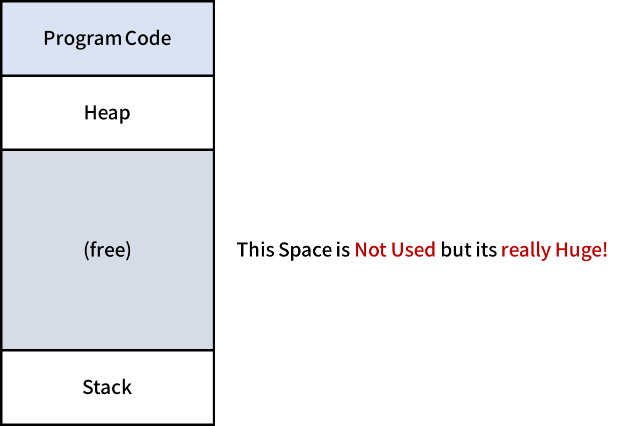 Dynamic Relocation의 문제점은 Virtual Memory 전체인 16kb가 생각보다 크고 대부분은 사용되고 있지 않다는 점입니다. 그러나 이것이 Physical Memory를 사용하고 있기에 이는 메모리 낭비입니다.