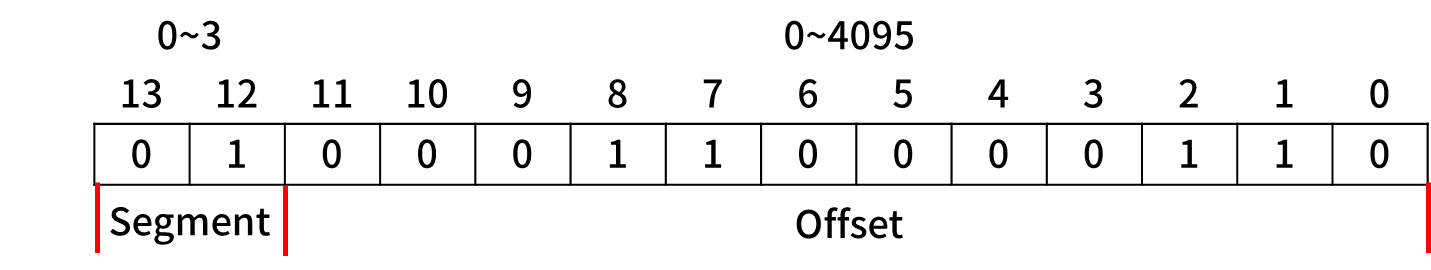 앞의 몇 비트를 어떤 Segment를 가르키는지로 사용하고, 나머지는 Offset이 됩니다.
